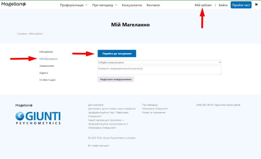 1. В особистому кабінеті перейдіть до вкладки “Мій Магеллано” і натисніть на кнопку “Перейти до тестування”